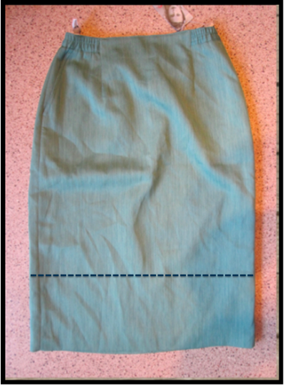 One of the first things we tackled was this green, secretary-ish skirt. it still had the price tags attached!