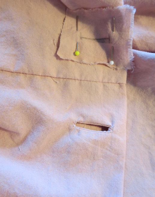 | I placed a little square of fabric on the right side of the fabric, and stitched/ cut a narrow opening... |
